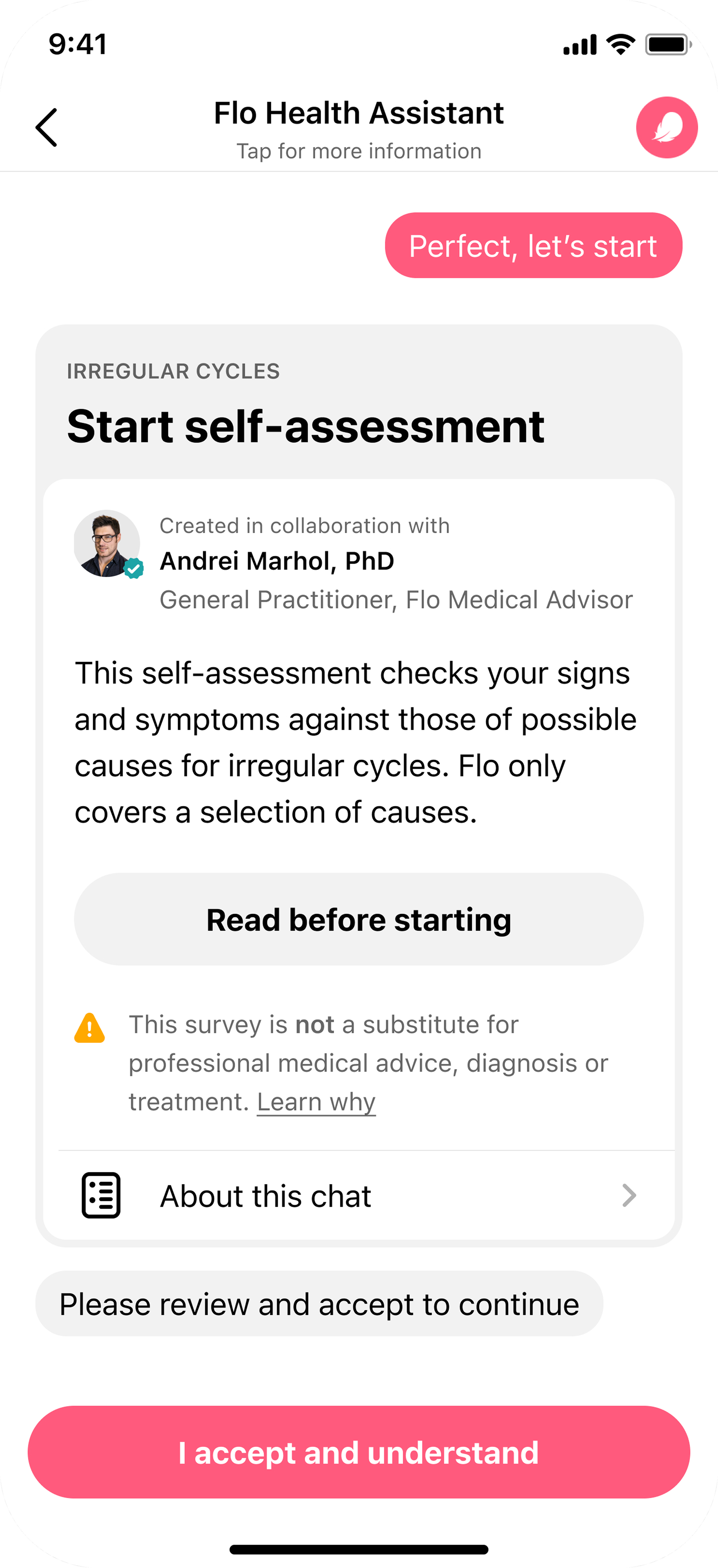 I led the conversation design team behind the first and largest conversational feature for women’s health, Flo’s Health Assistant.