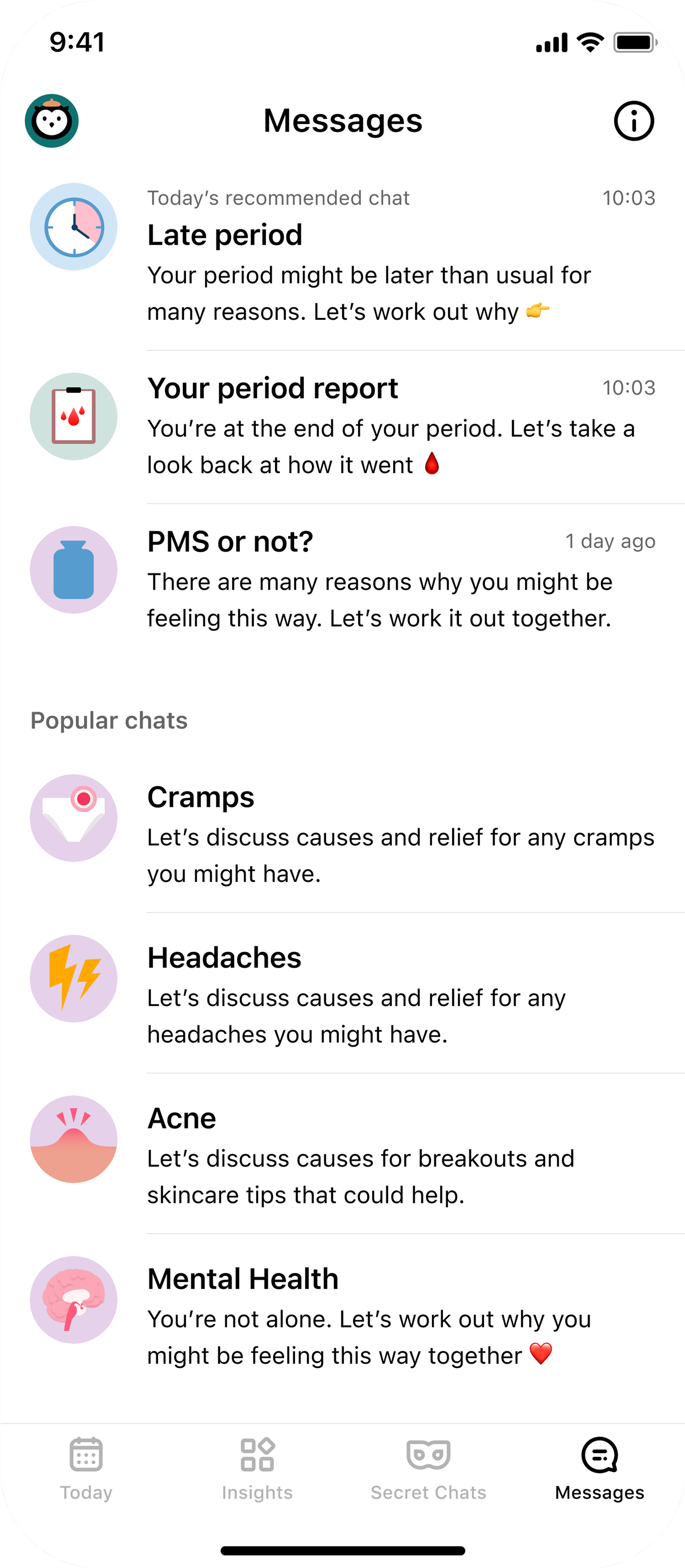 I helped establish the practice of conversation design, managed a team of 8, and oversaw 100+ dialogues covering topics like menstrual cycles, mental health, fertility, and more.